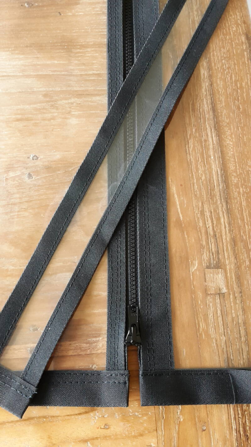 Voor de sluiting met de raampjes wordt gebruik gemaakt van goede kwaliteit YKK ritsen. De ramen kunnen worden opgerold, en met een houtje-touwtje sluiting worden vastgemaakt.
